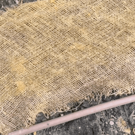 So last week, I tried a method I love using when germination is tough: I covered the freshly seeded areas with burlap fabric.